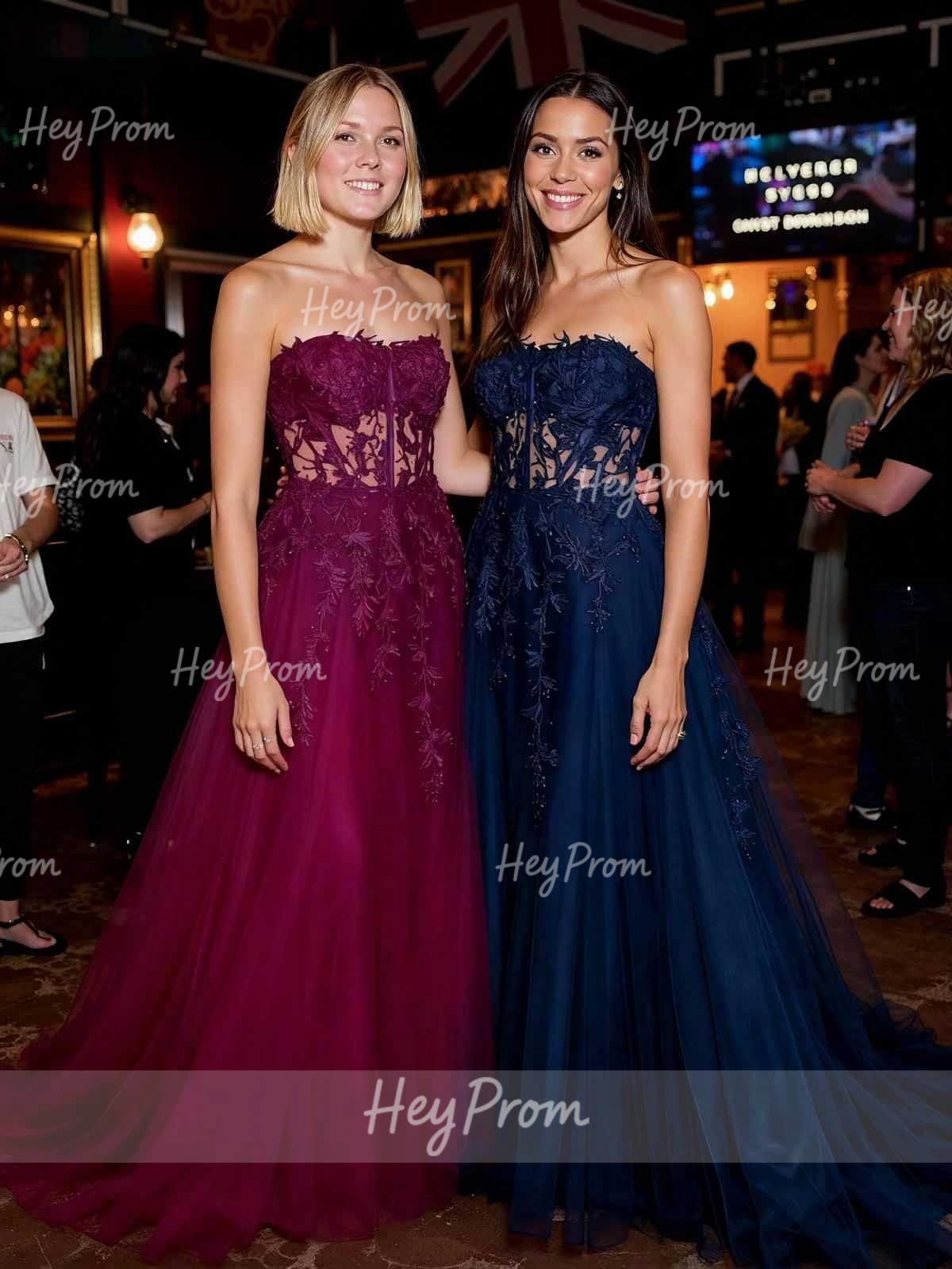 Princess Ball Gown One-Shoulder Lace/Tulle Prom Dresses With Appliques Lace